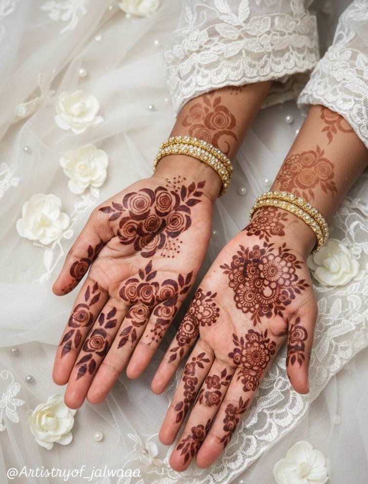 Traditional henna reflects cultural heritage with classic motifs and symmetrical patterns. These designs are perfect for festivals, religious occasions, and family celebrations.